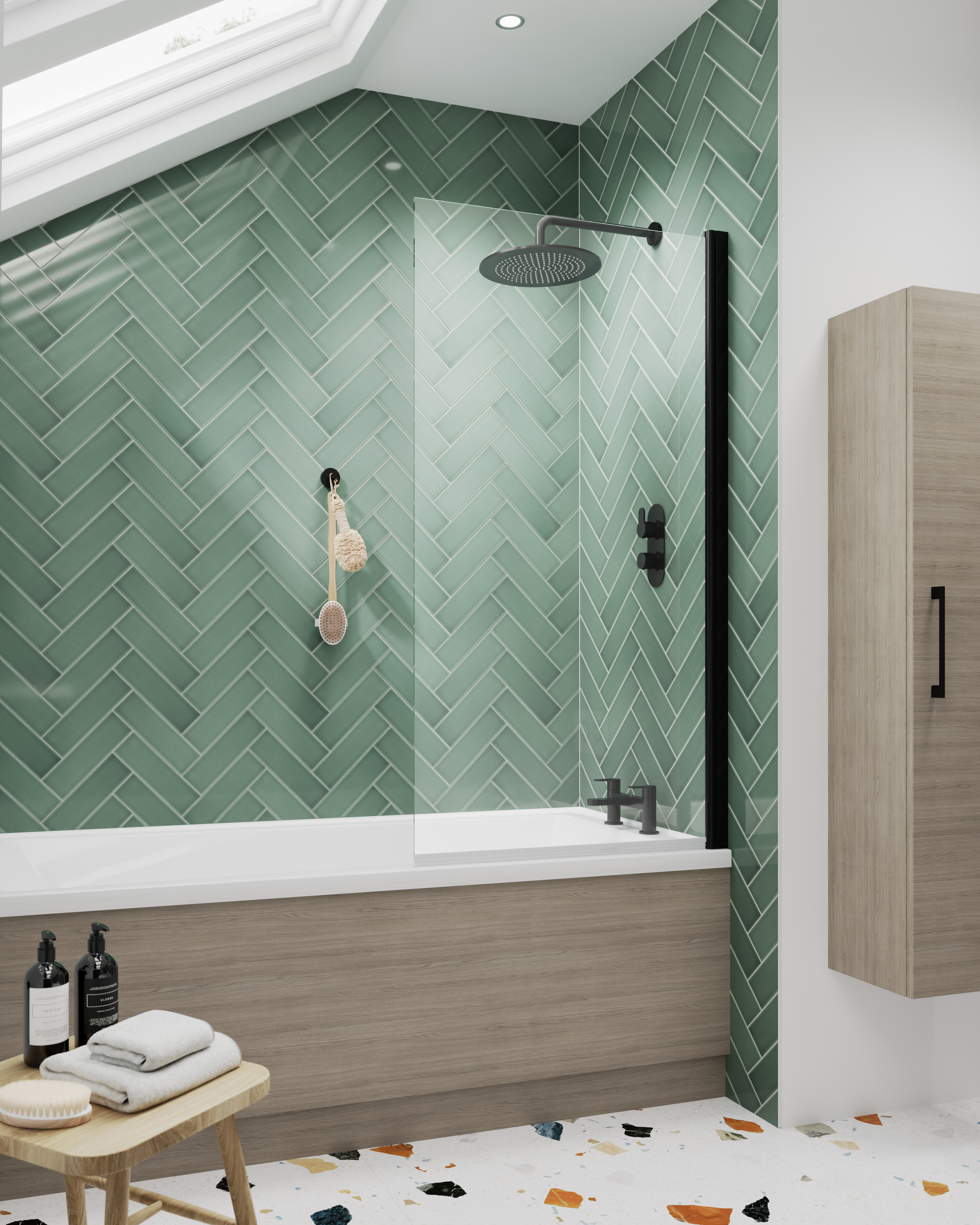 Includes plinth. For use with straight baths. Coordinating bath end panel also available.