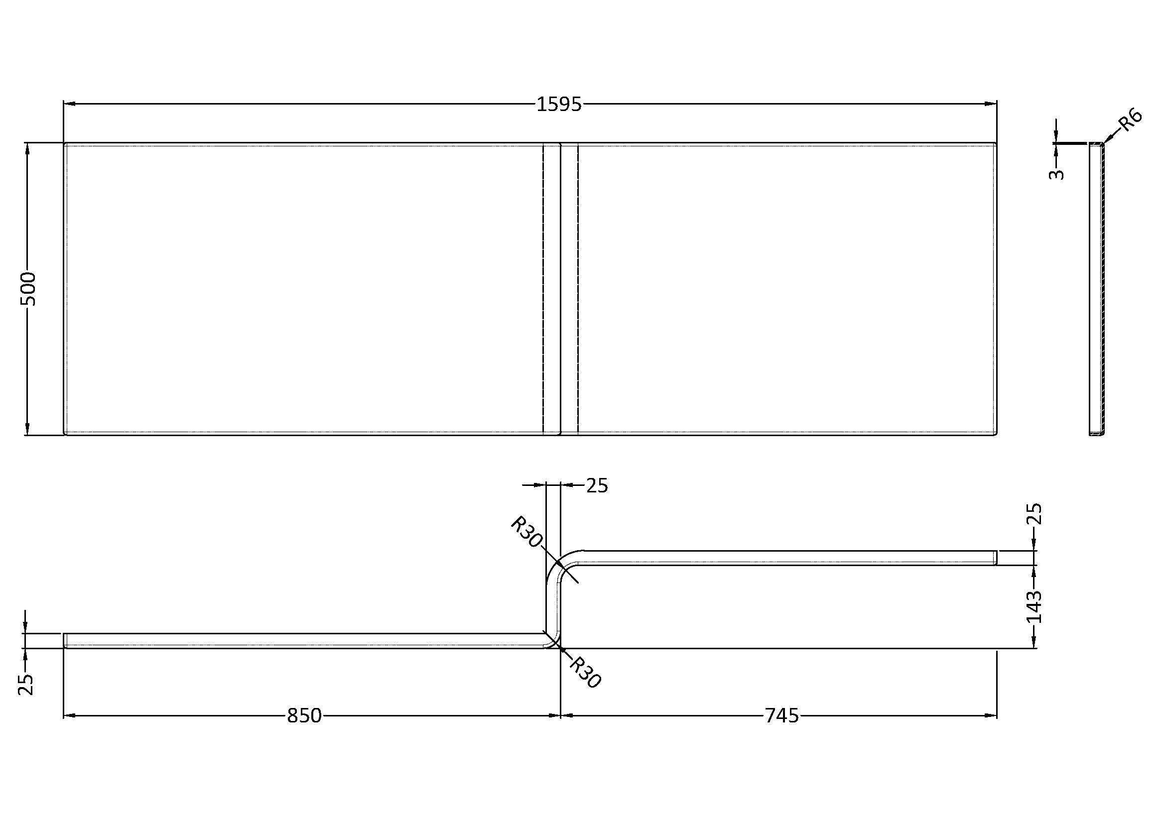 L-Shape Shower Bath Front Panel 1500mm