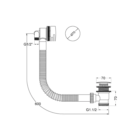 Round design. Suitable for baths up to 18mm thick. Projection of overflow piece is 35mm.