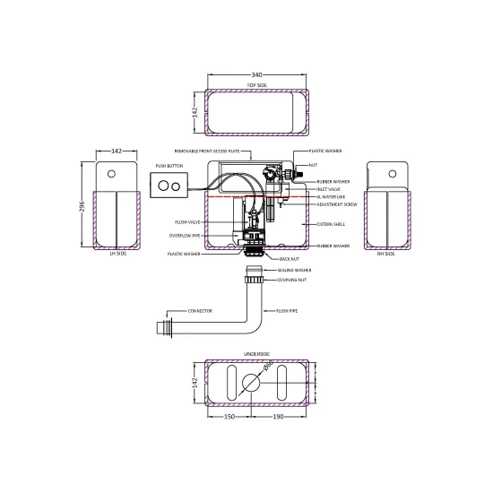 Ceramics Accessories Pneumatic Dual Flush Universal Access Concealed Cistern