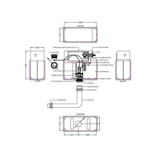 Ceramics Accessories Pneumatic Dual Flush Universal Access Concealed Cistern