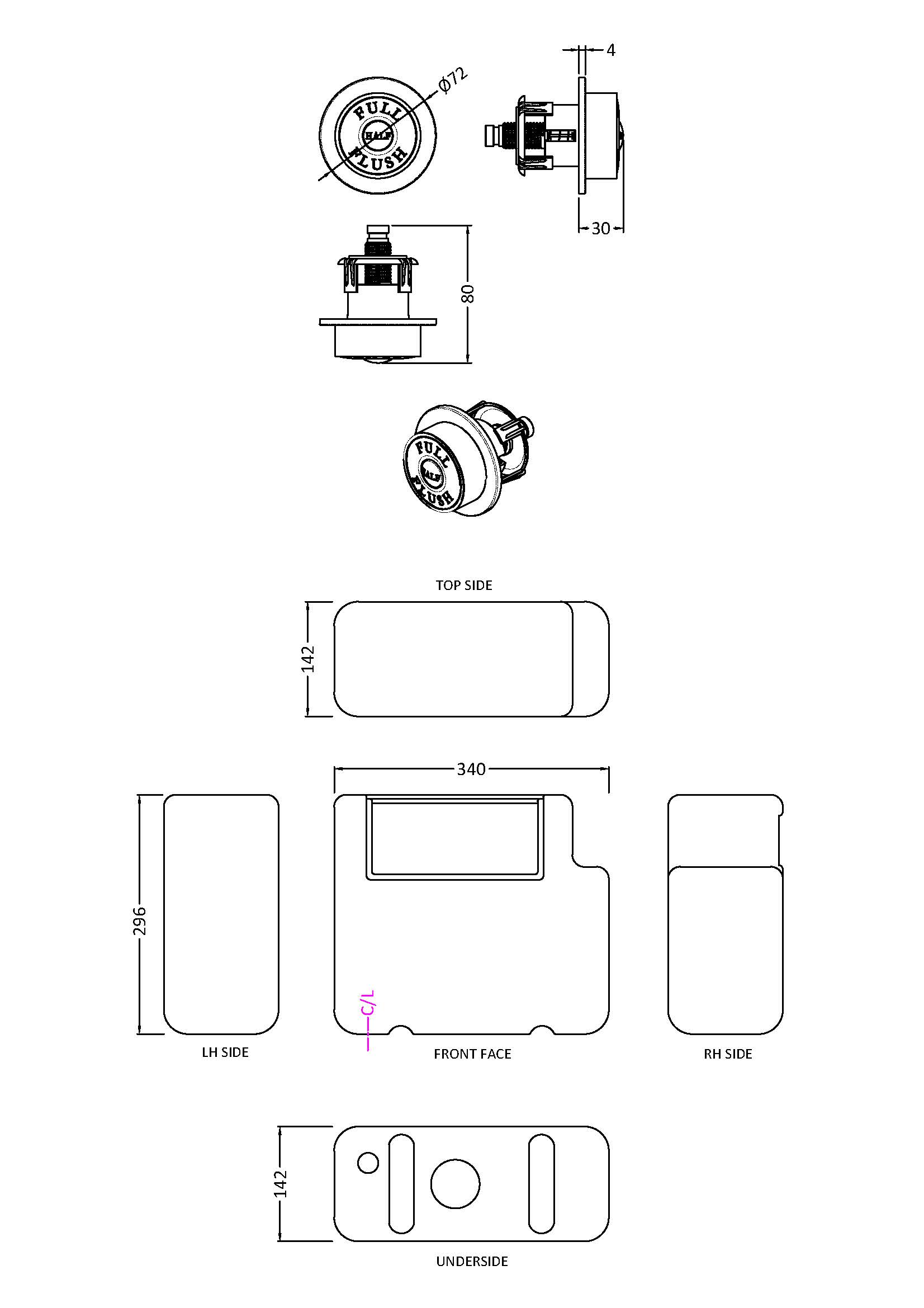 Universal Access Cistern & Chrome Traditional Flush Plate