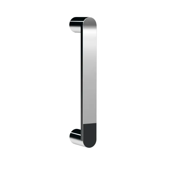 Rounded chrome handle for use with Pacific shower doors and enclosures.