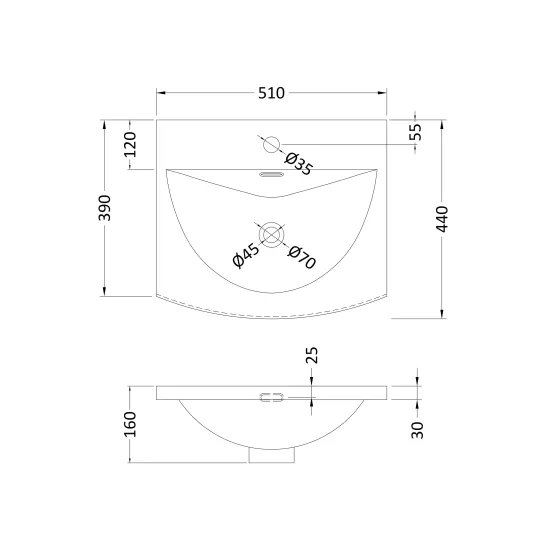Furniture Curved Ceramic Basin 1 Tap Hole 500mm