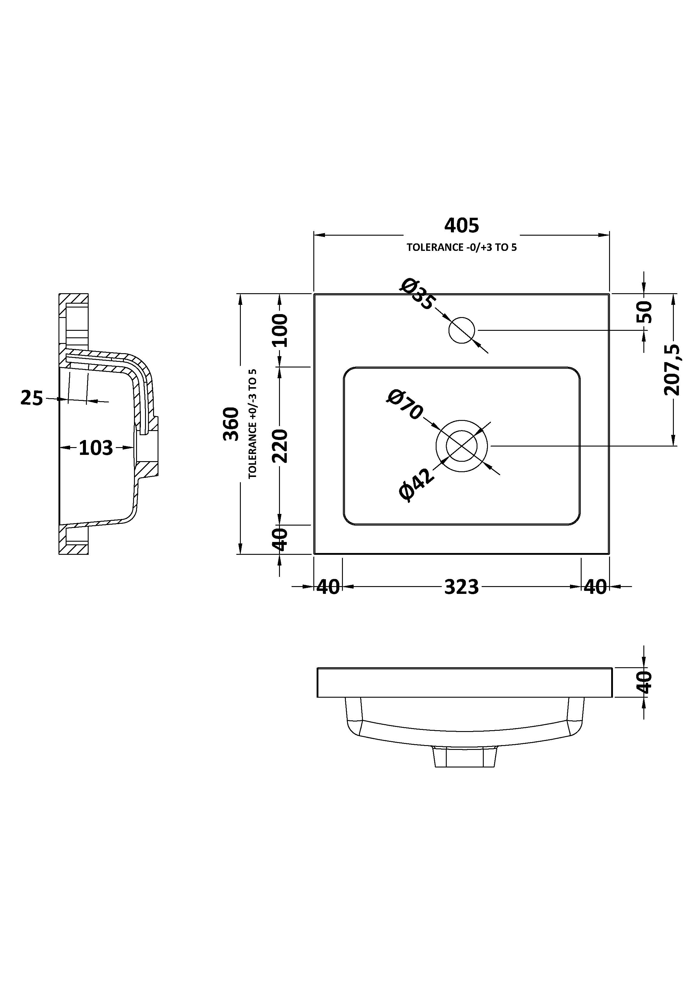 Fusion Fitted Square Full Depth 1 Tap Hole Polymarble Basin 400mm