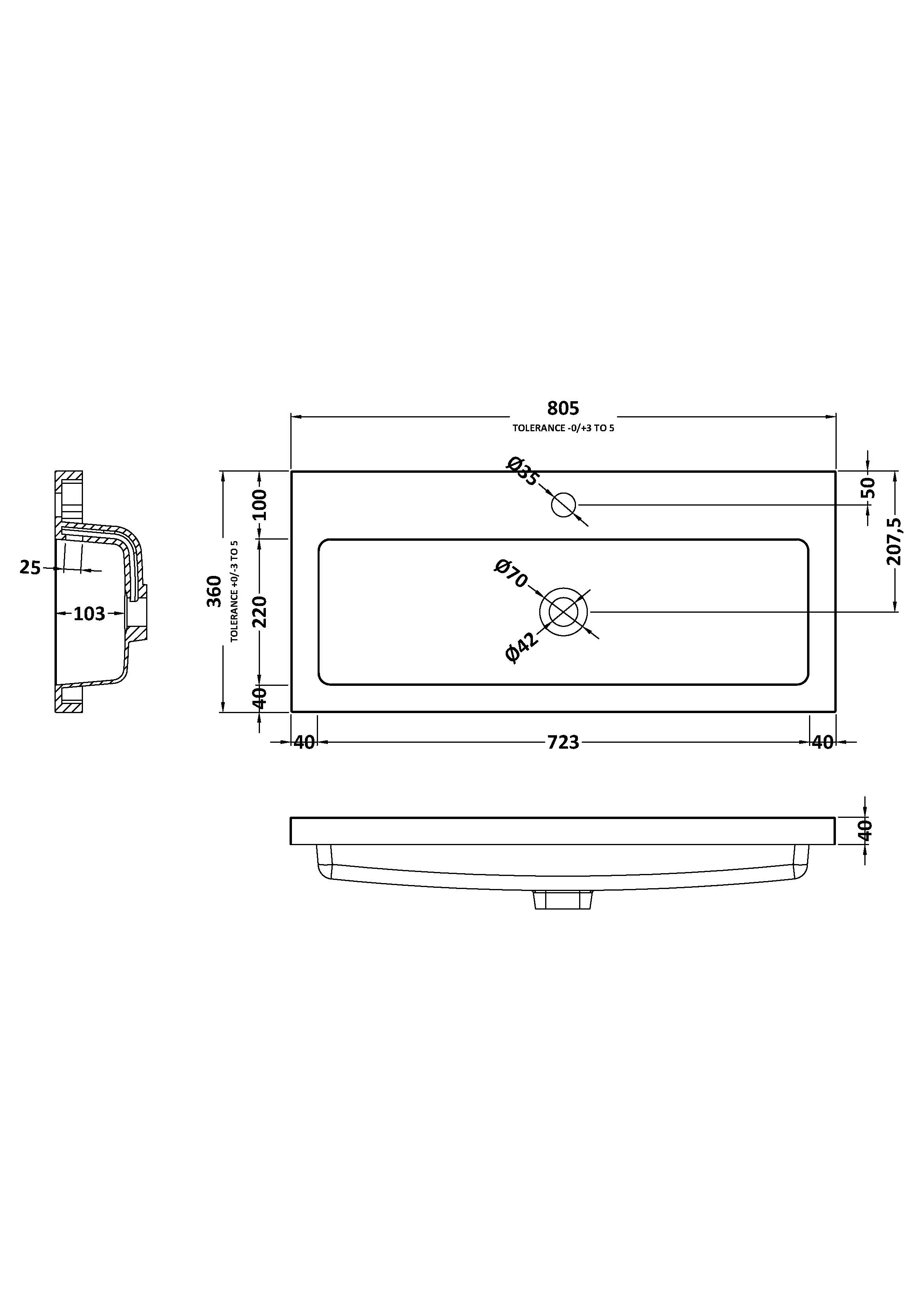 Fusion Fitted Square Full Depth 1 Tap Hole Polymarble Basin 800mm