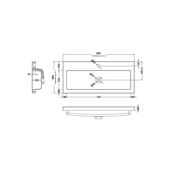 Hudson Reed Fusion Fitted Square Full Depth 1 Tap Hole Polymarble Basin 800mm