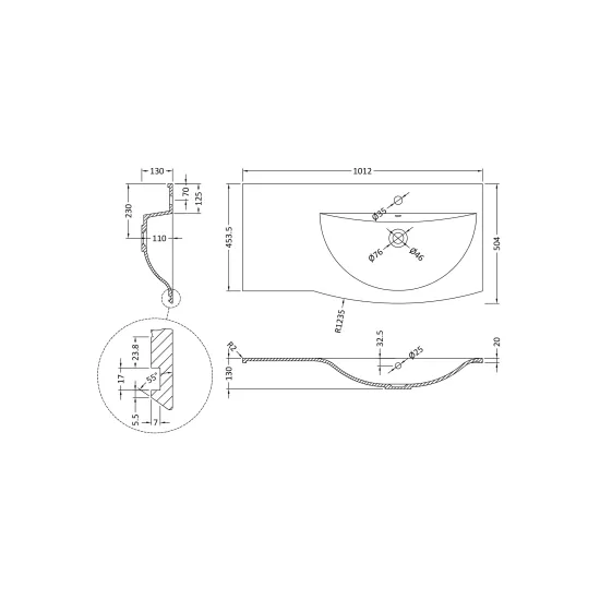 Hudson Reed Sarenna Curved Right Hand 1 Tap Hole Polymarble Basin 700mm