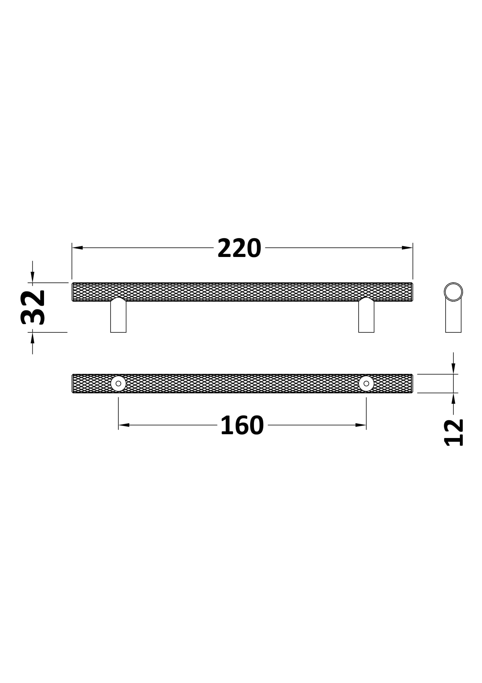 Handles Knurled Bar Handle 160mm Centres