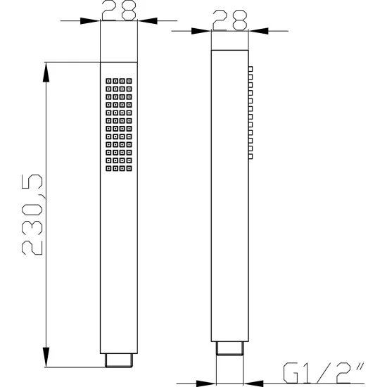 Minimalist square design. Easy clean nozzles. 1/2" BSP connections. Suitable for low pressure.