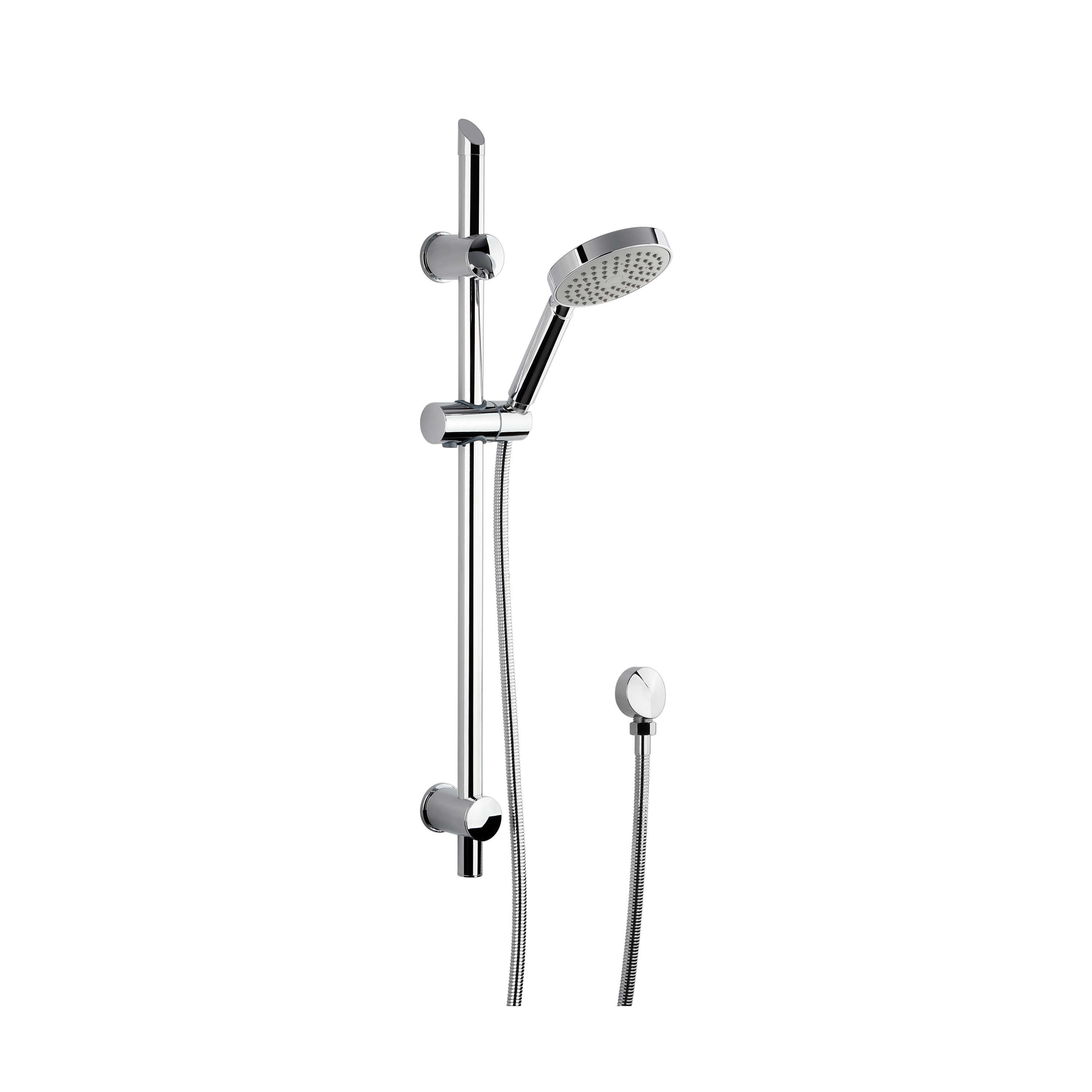 Single function round handset. 1.5m shower flex chrome plated brass. Outlet elbow chrome plated ABS.