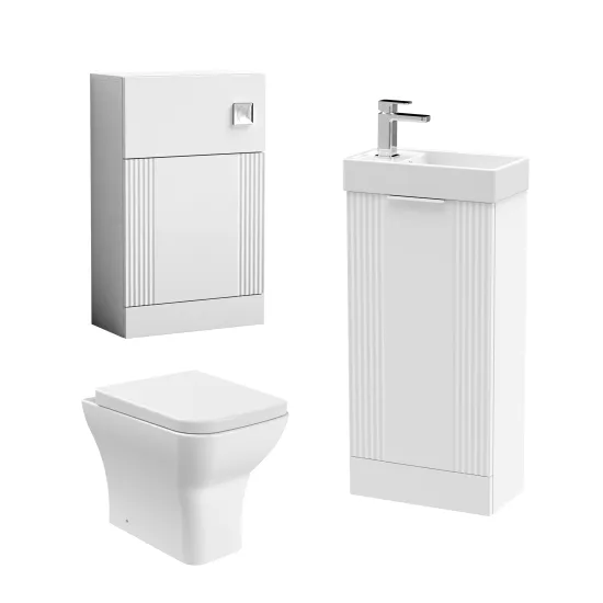 Contemporary part fluted art deco design features on both the vanity and WC unit
