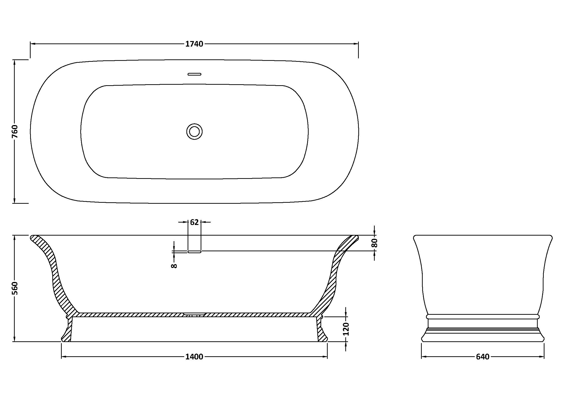 Aurelius Oval Freestanding Bath with Overflow 1740mm x 760mm - No Waste