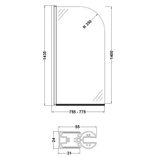 B Shaped Shower Baths