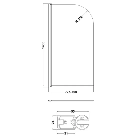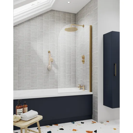 Utilise space in your bathroom and create a showering space within your bath. Every bath screen is reversible in order to perfectly fit your needs. This screen is made of 6mm toughened safety glass. Stunning contemporary brushed brass profile.