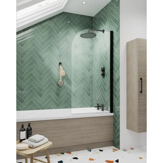 Utilise space in your bathroom and create a showering space within your bath. Every bath screen is reversible in order to perfectly fit your needs. This screen is made of 6mm toughened safety glass. Stunning contemporary matt black profile.