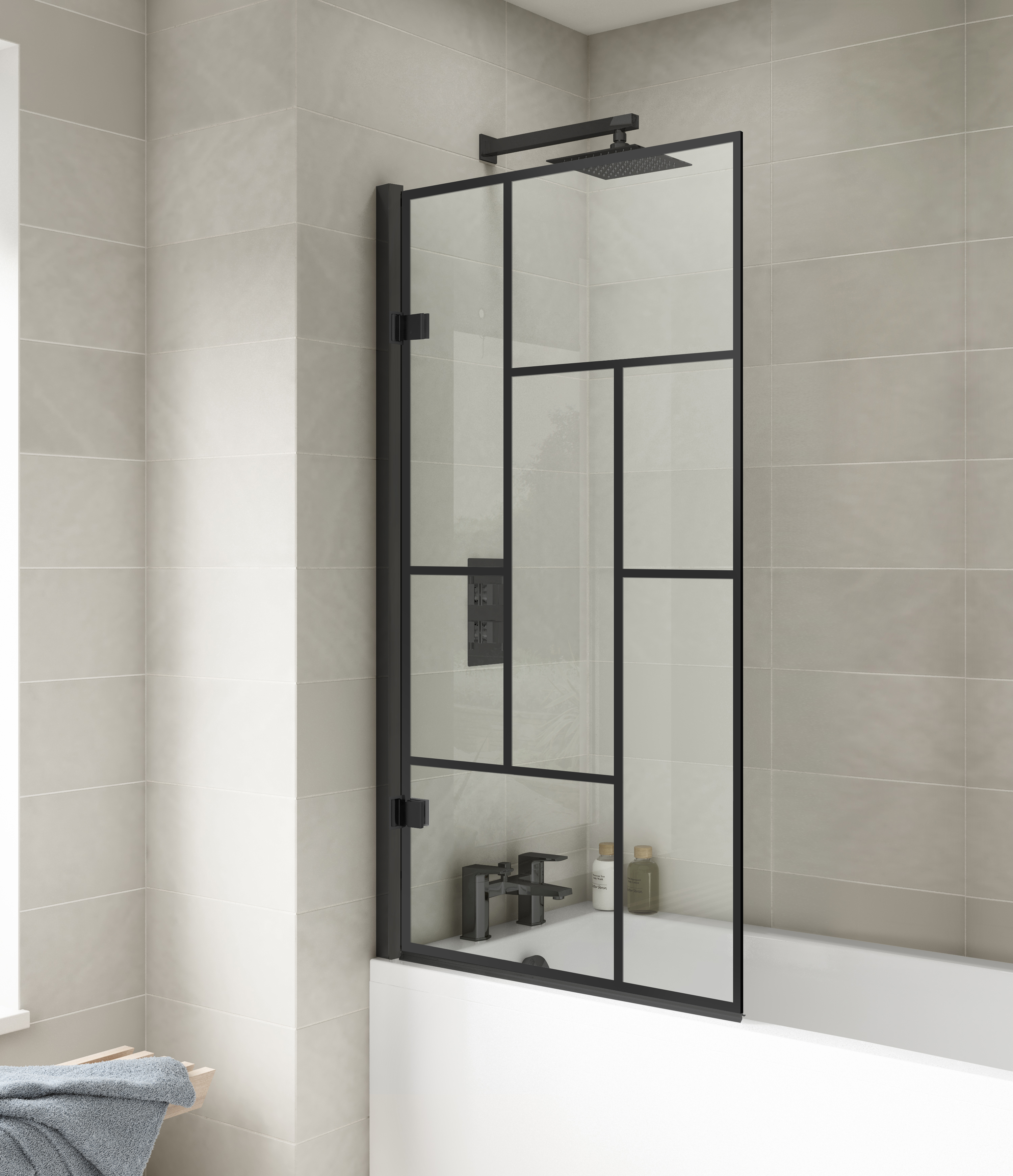Impressive black finish. Utilise space in your bathroom and create a showering space within your bath. Every bath screen is reversible in order to perfectly fit your needs. This screen is made of 8mm toughened safety glass. Suitable for use with square shower baths.