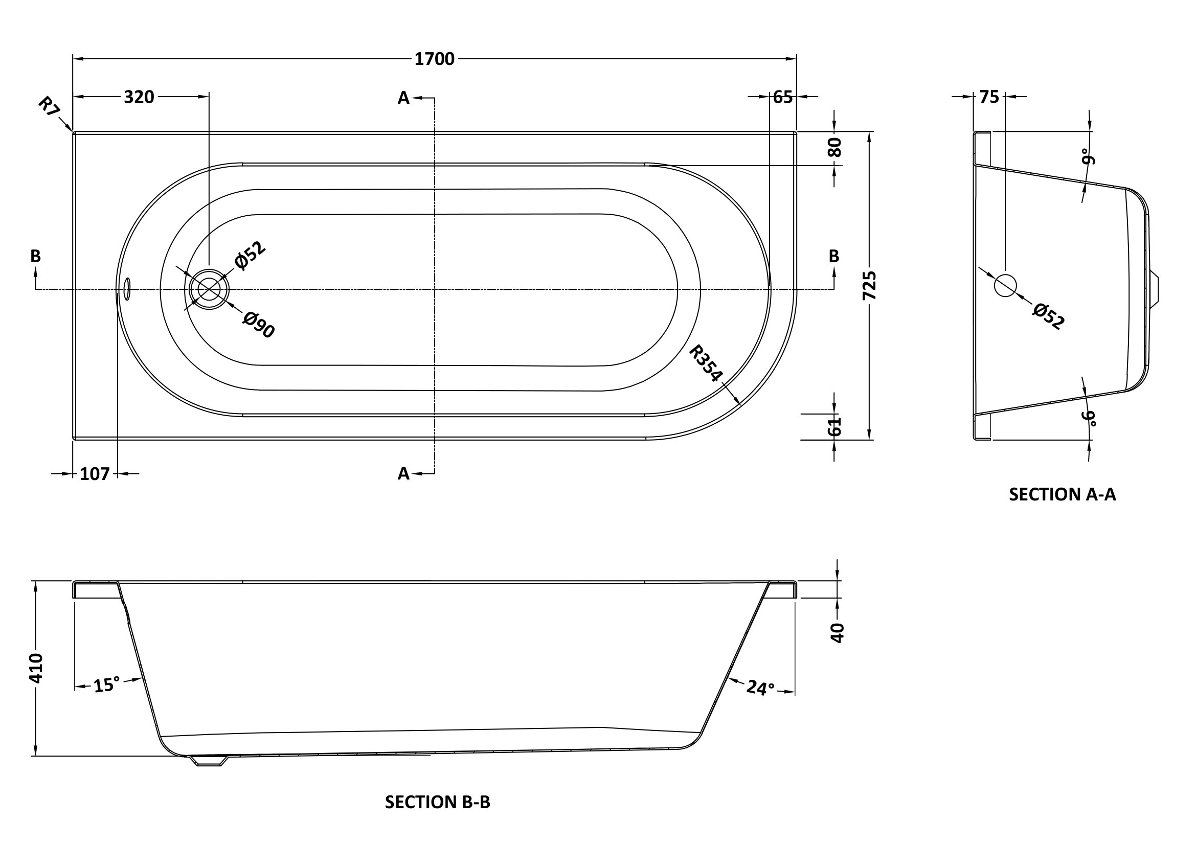 Luxury back to wall corner bath. Designed and built to the highest quality. Supplied with leg set.
