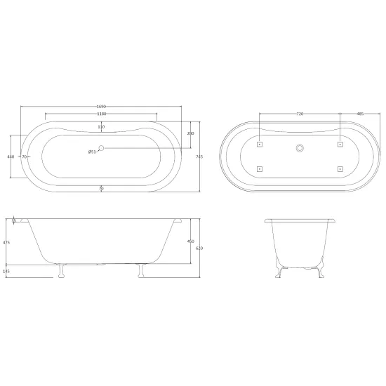 Minimum quantity for "Elmstead Freestanding Double Ended Slipper Bath with Feet Set 2 - 1700mm" is 1.