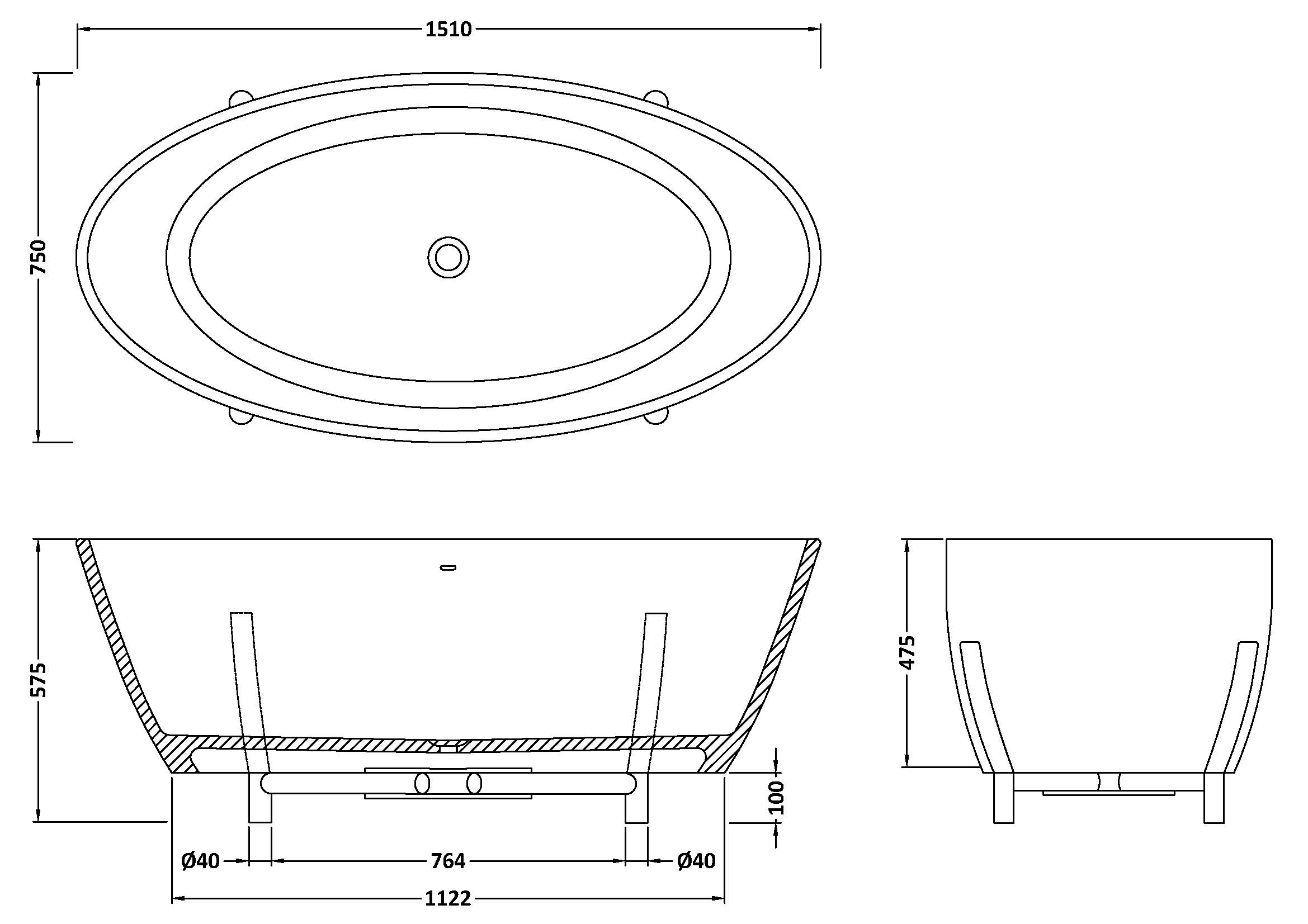 Essex Round Freestanding Bath with Leg Stand 1510mm x 760mm - No Waste