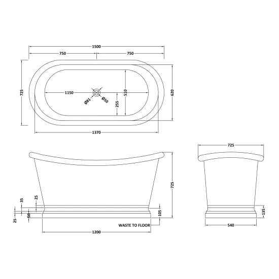 Copper Baths Freestanding Boat Bath - Brass Outer/Brass Inner - 1500mm