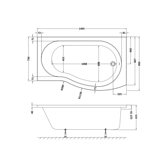 Suitable for use with a bath screen to create a shower enclosure, a perfect space saving option.Designed and built to the highest quality. Sanitary Grade Acrylic.Un-drilled.Supplied with leg set.Bath panels sold separately