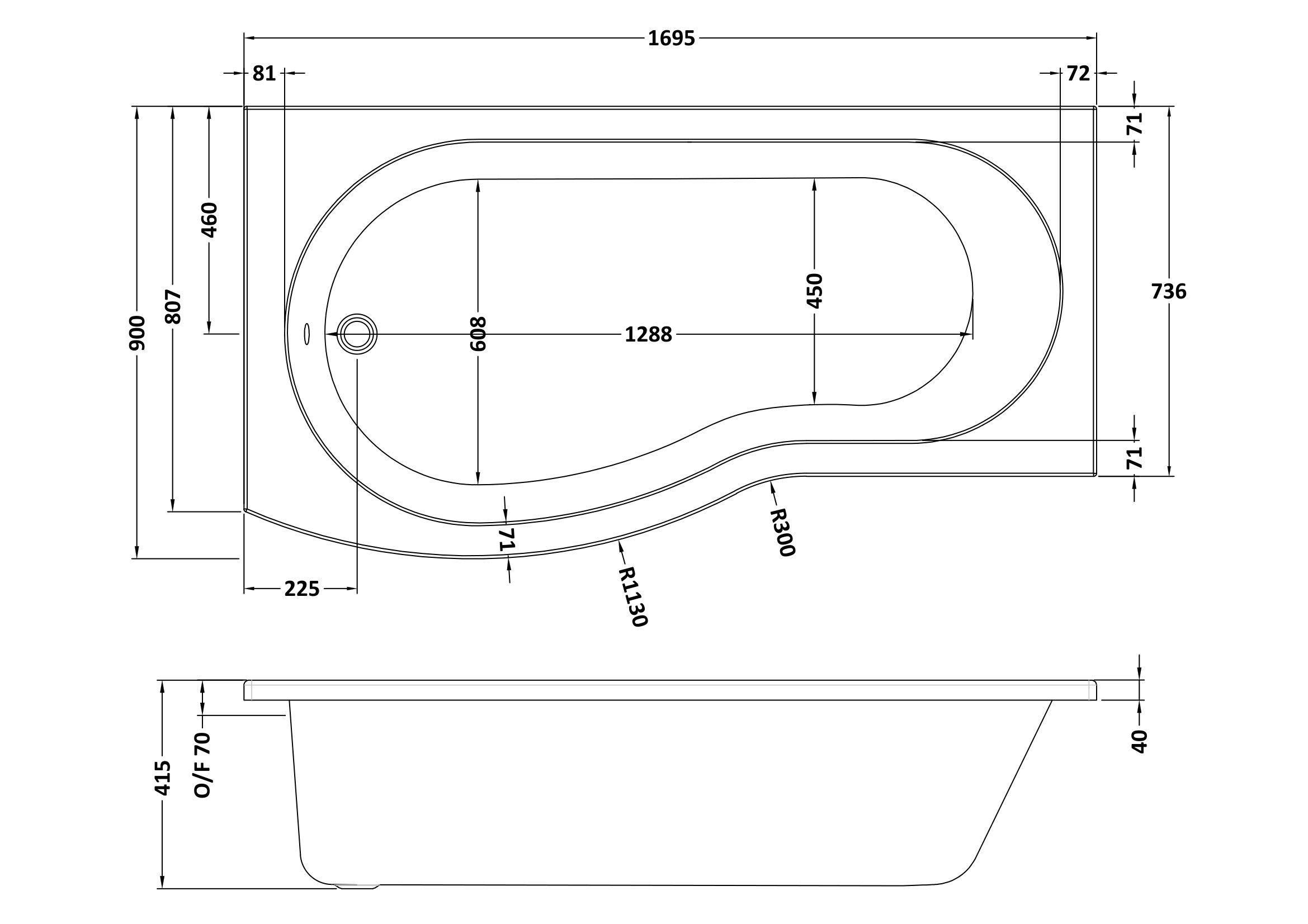 B-Shaped Shower Sath Left Hand 1700mm - No Leg Set