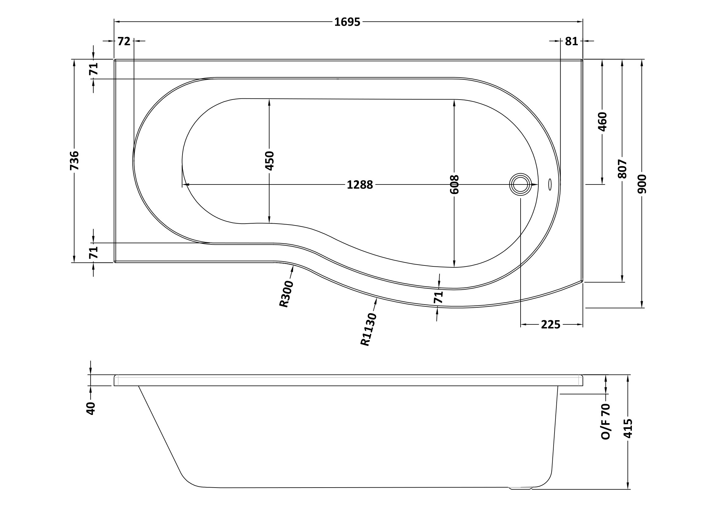 B-Shaped Shower Sath Right Hand 1700mm - No Leg Set