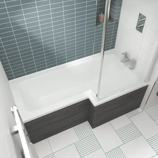 nuie Shower Baths 1500mm Right Hand Square Shower Bath