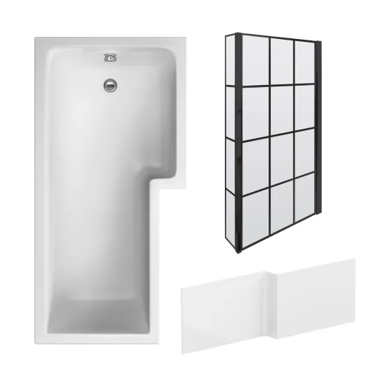Includes 1700mm right hand shower bath, bath screen & gloss white acrylic side panel