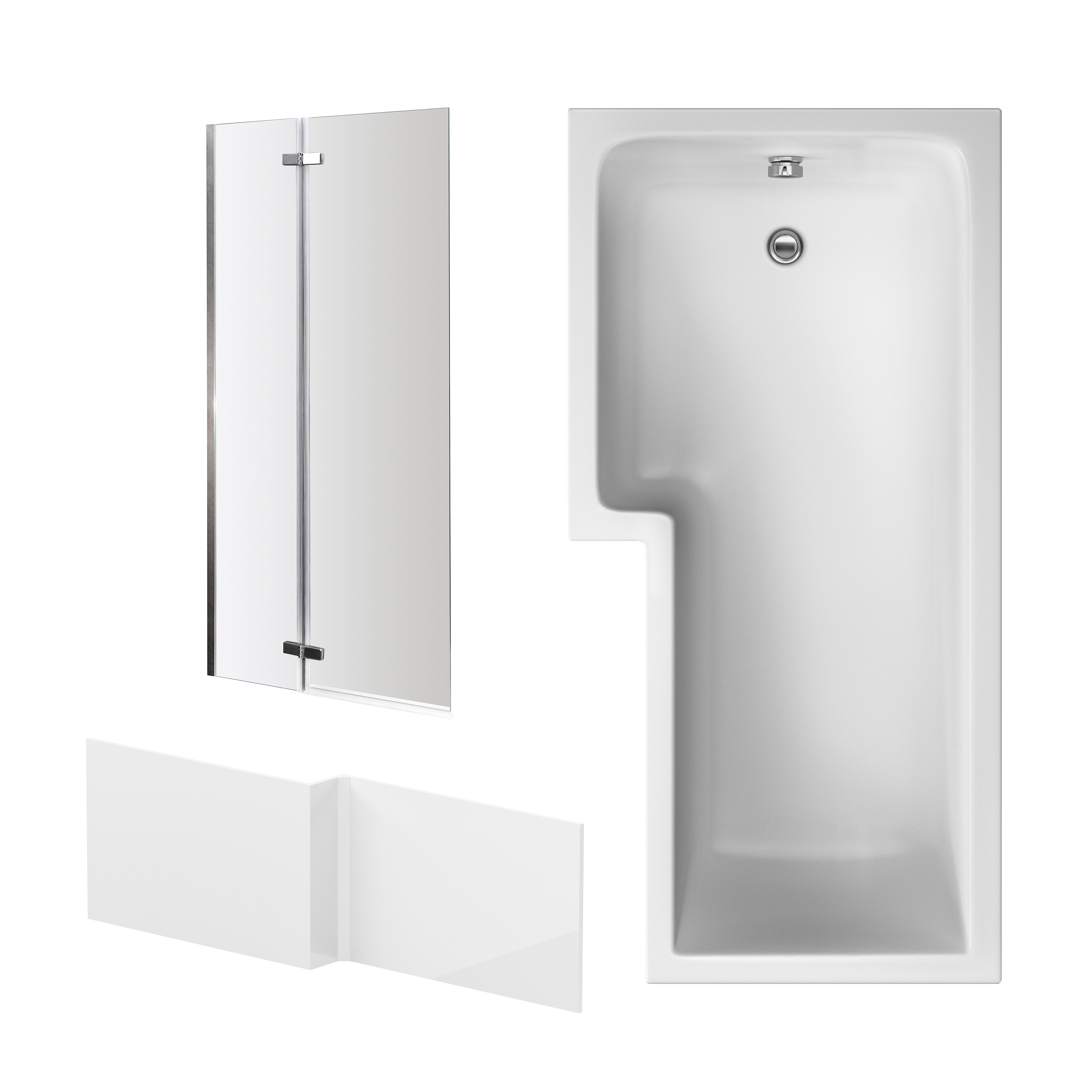 Includes 1700mm left hand shower bath, bath screen & gloss white acrylic side panel