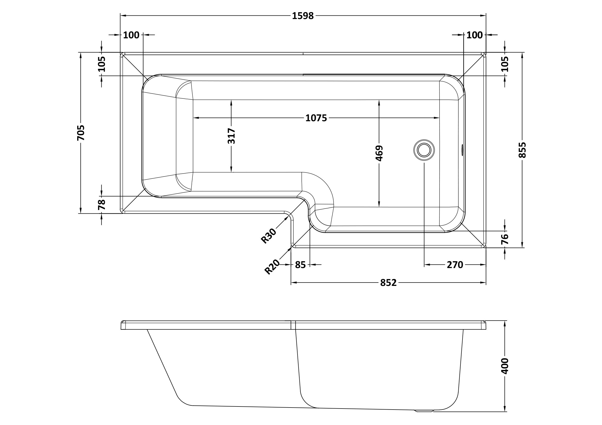 B Shaped Shower Baths