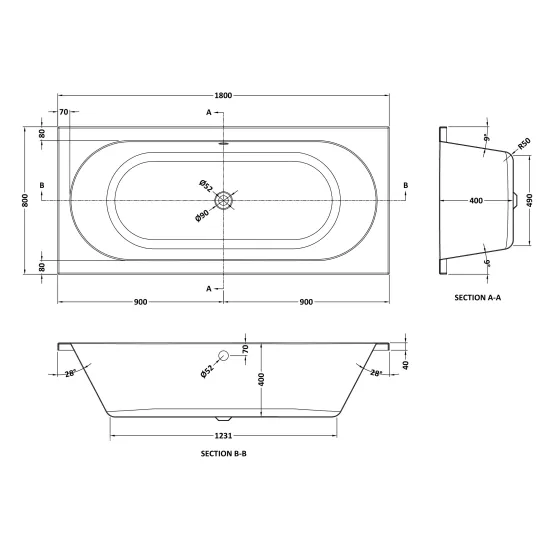 Otley Eternalite Round Double Ended Straight Shower Bath 1800mm x 800mm