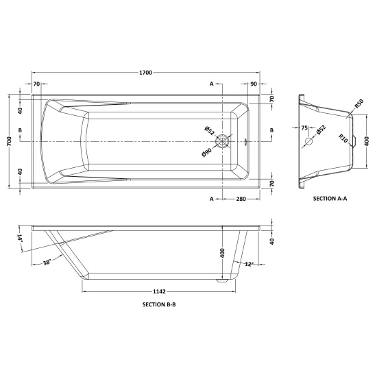 Nuie 1700x700 Eternalite Bath Panel & Screen