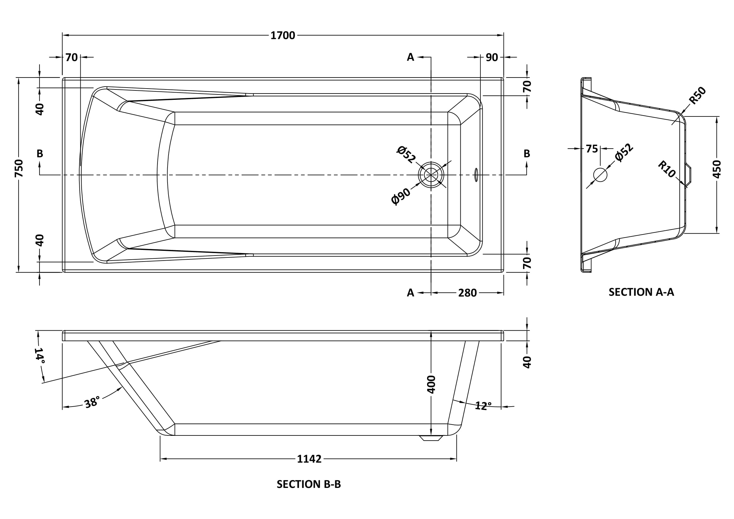 Nuie 1700x750 Eternalite Bath Panel & Screen