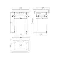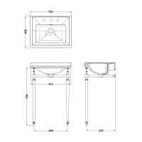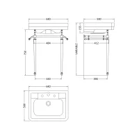 500mm 3TH Basin With Traditional Stand