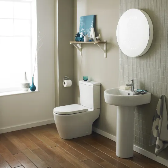 Modern curves creating a clean neat design. Full pedestal for a classic look. Co-ordinating pan options available. Made from quality vitreous china.