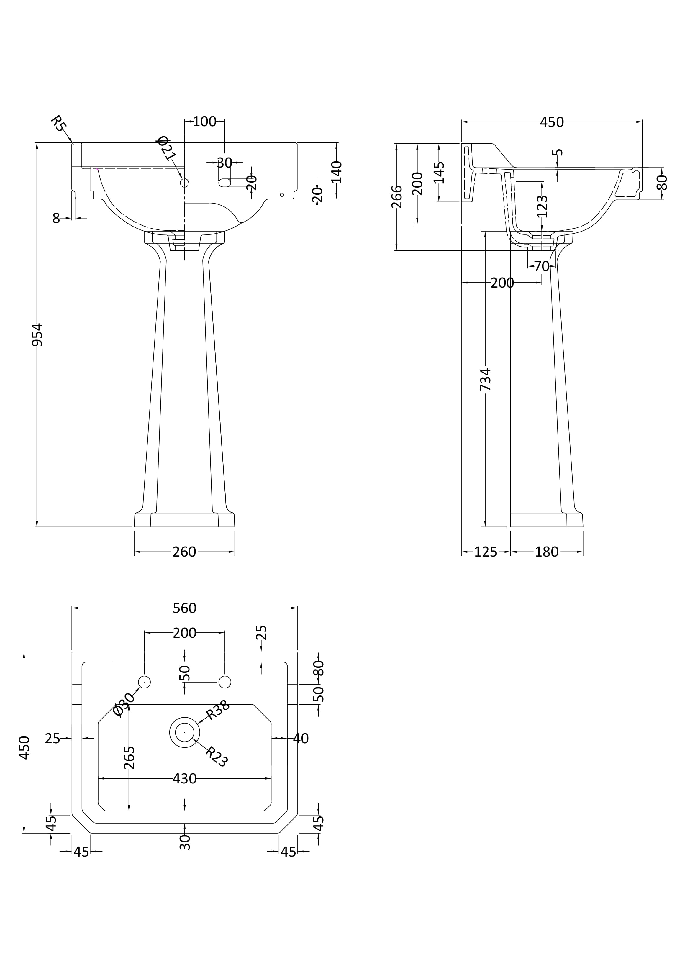 Richmond 560mm 3 Tap Hole Basin & Comfort Height Pedestal