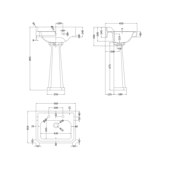 Richmond 560mm Basin & Pedestal 3 Tap Hole