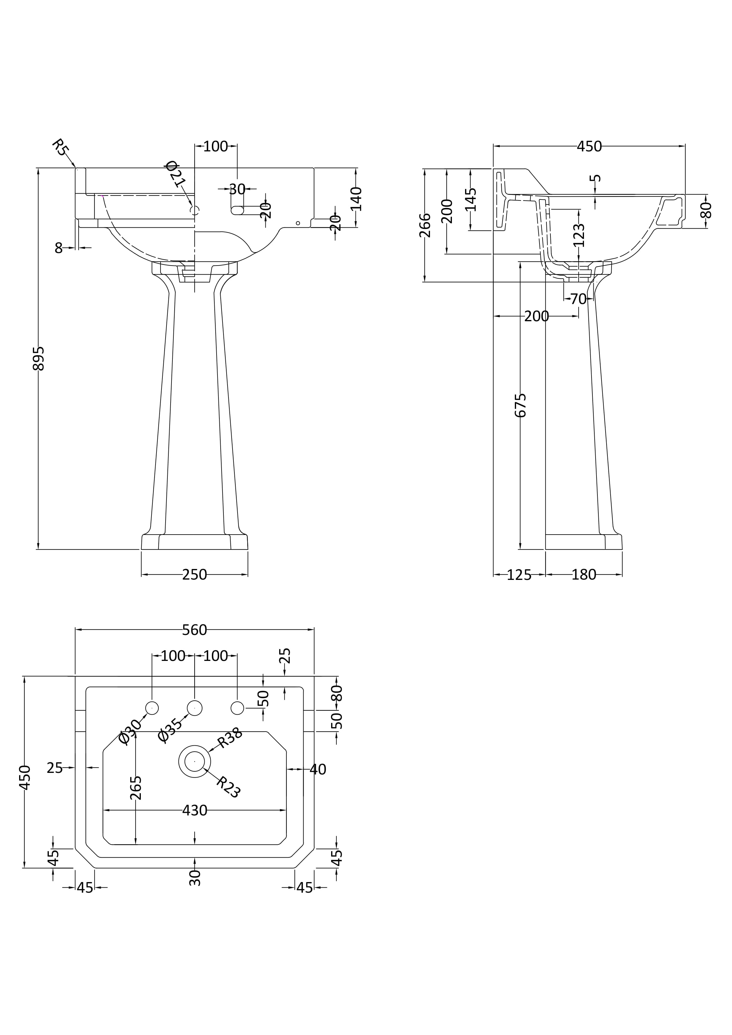 Richmond 560mm Basin & Pedestal 3 Tap Hole