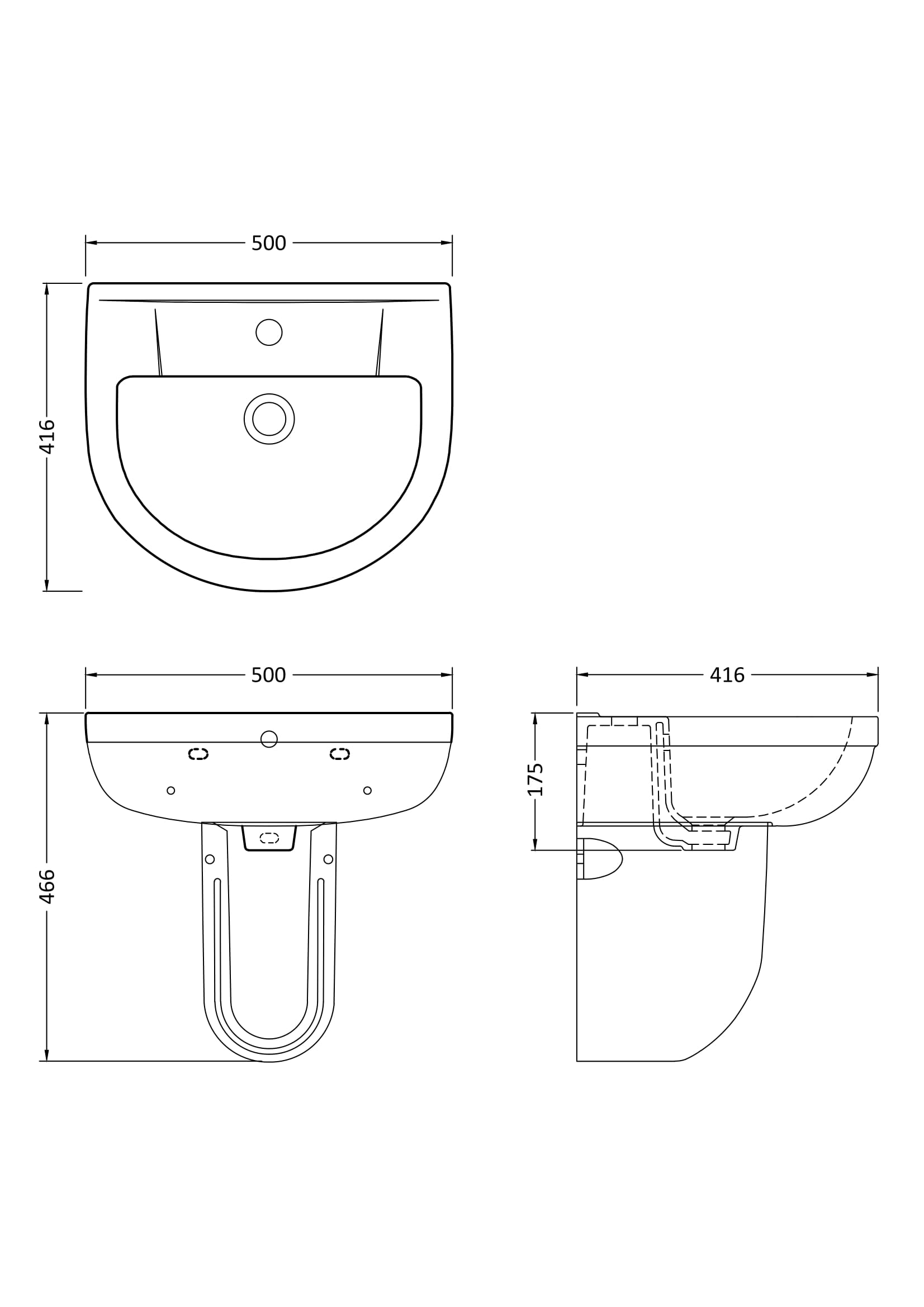 Ivo 550mm Basin 2 Tap Hole & Semi Pedestal