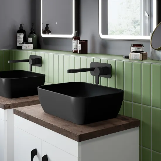 Luxury matt finish. Feauturing square geometric lines, creating a comtemporary look. Perfect for countertops. Suitable for high rise mixers. Manufactured from high quality vitreous china.