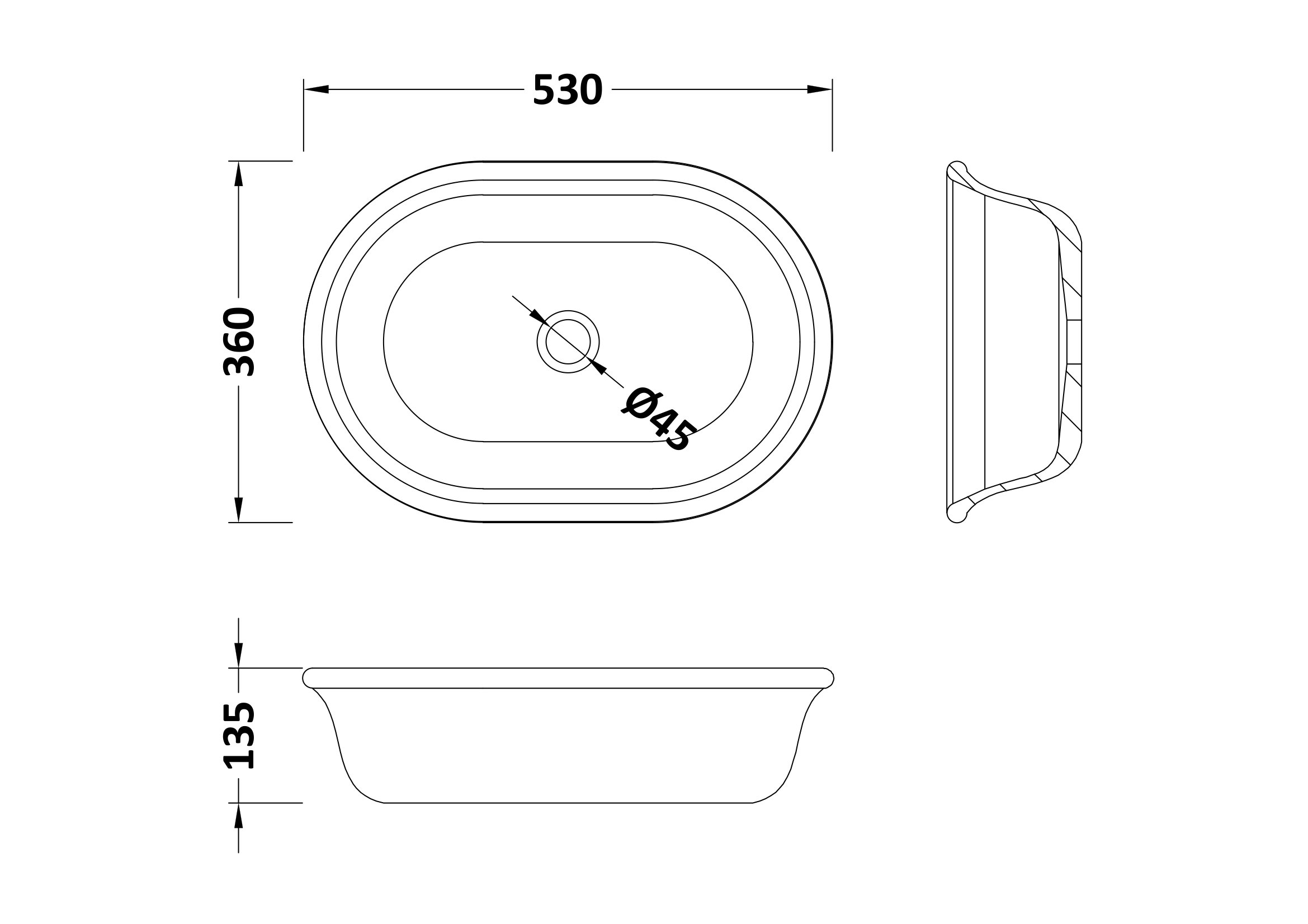 BC Designs Omnia Basin 530x360mm - No Waste - Polished White