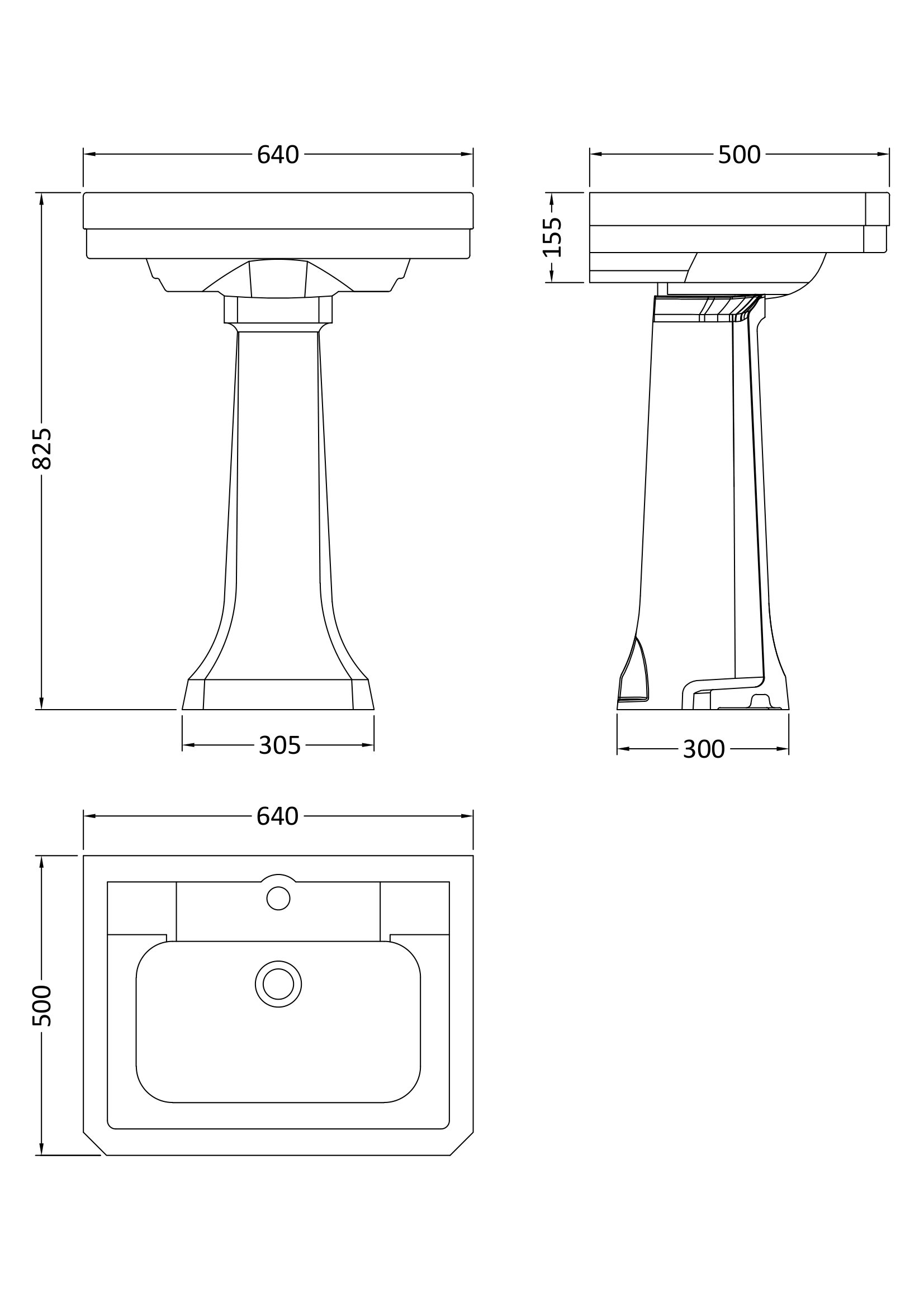 BC Designs Victrion 640mm Basin & Pedestal 1TH - White