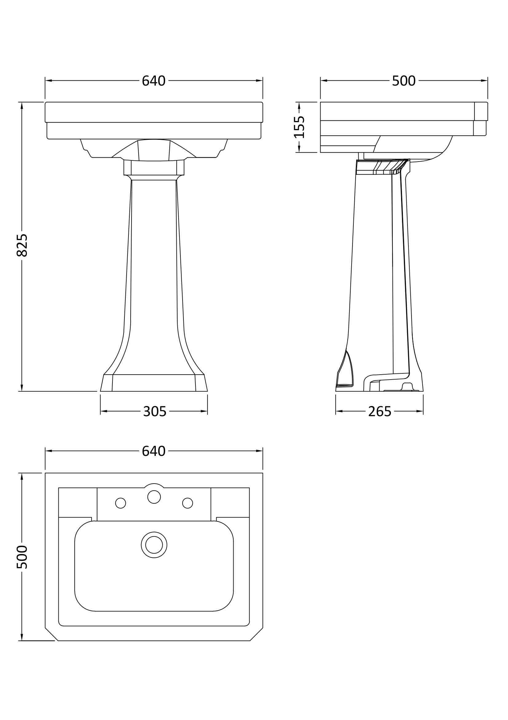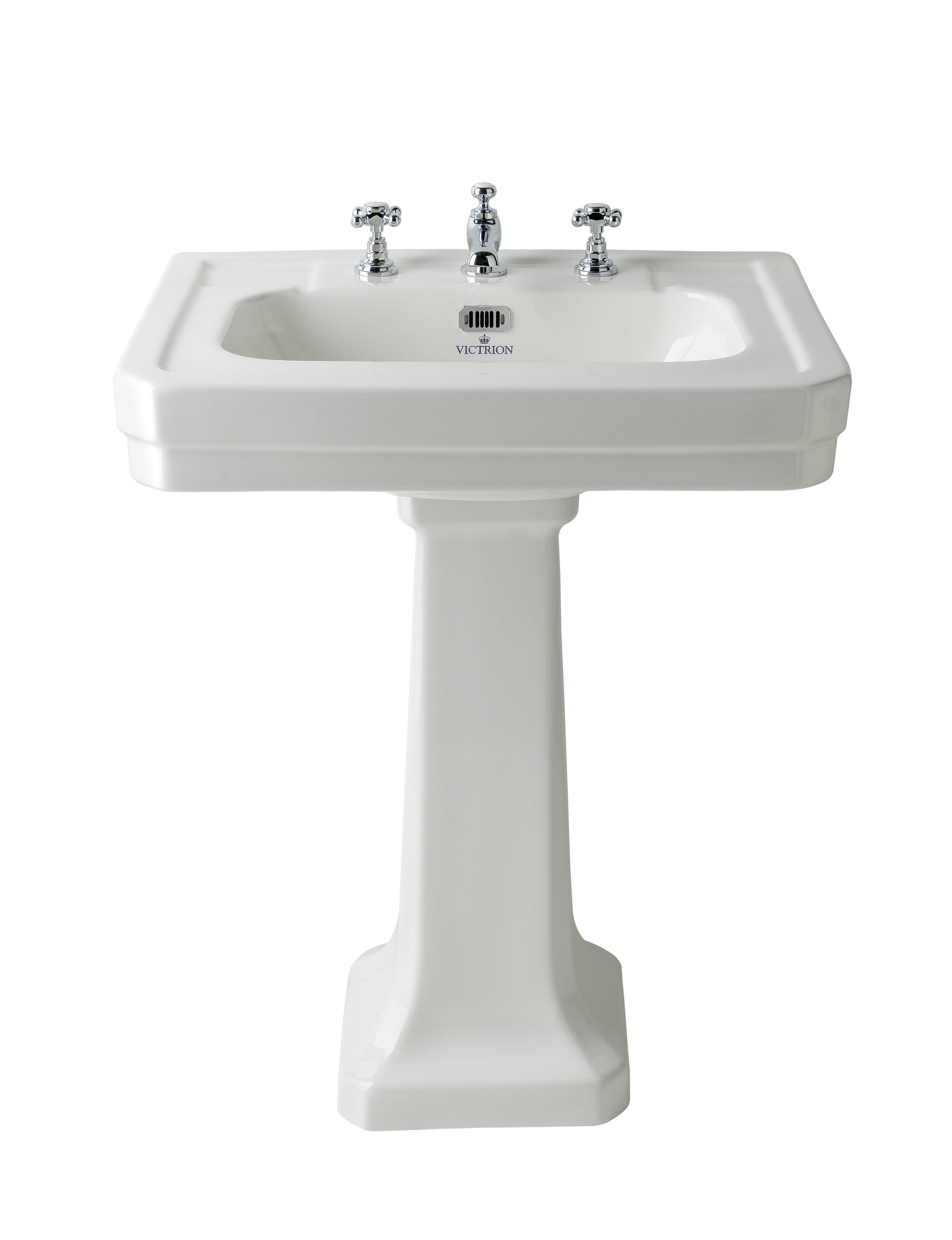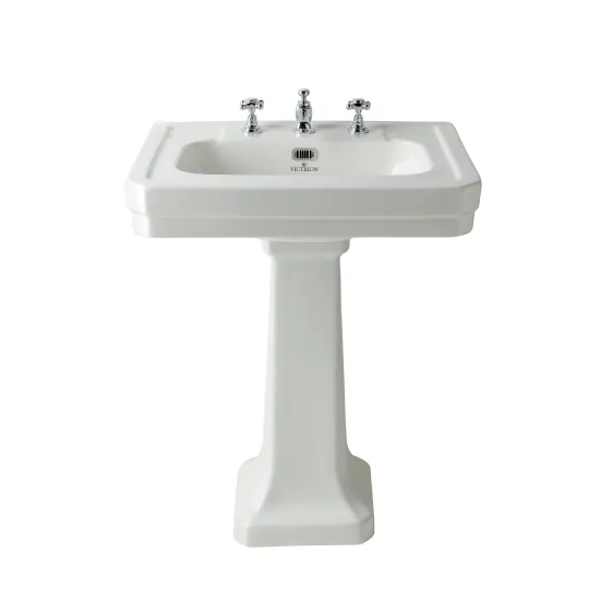 BC Designs Victrion 640mm Basin & Pedestal 3TH - White