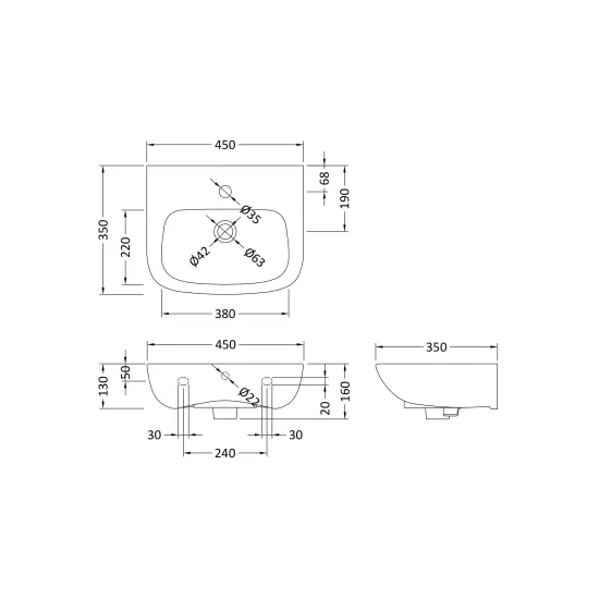 nuie Ambrose 450mm Basin 1 Tap Hole