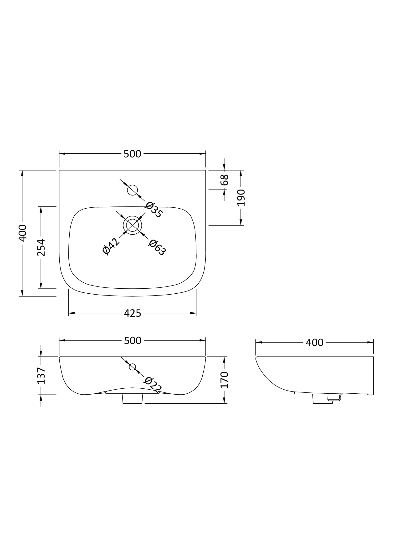 nuie Ambrose 500mm Basin 1 Tap Hole