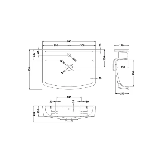 nuie Bliss Square 600mm Basin 1 Tap Hole