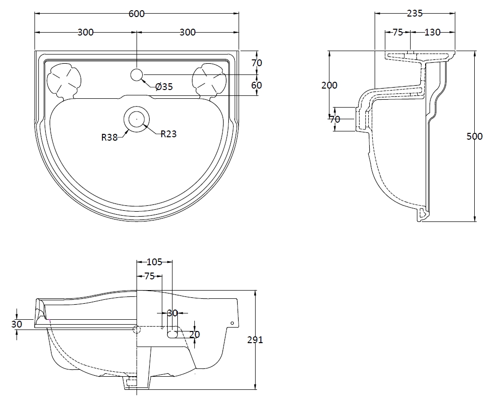 Hudson Reed Chancery Large Basin 1 Tap Hole