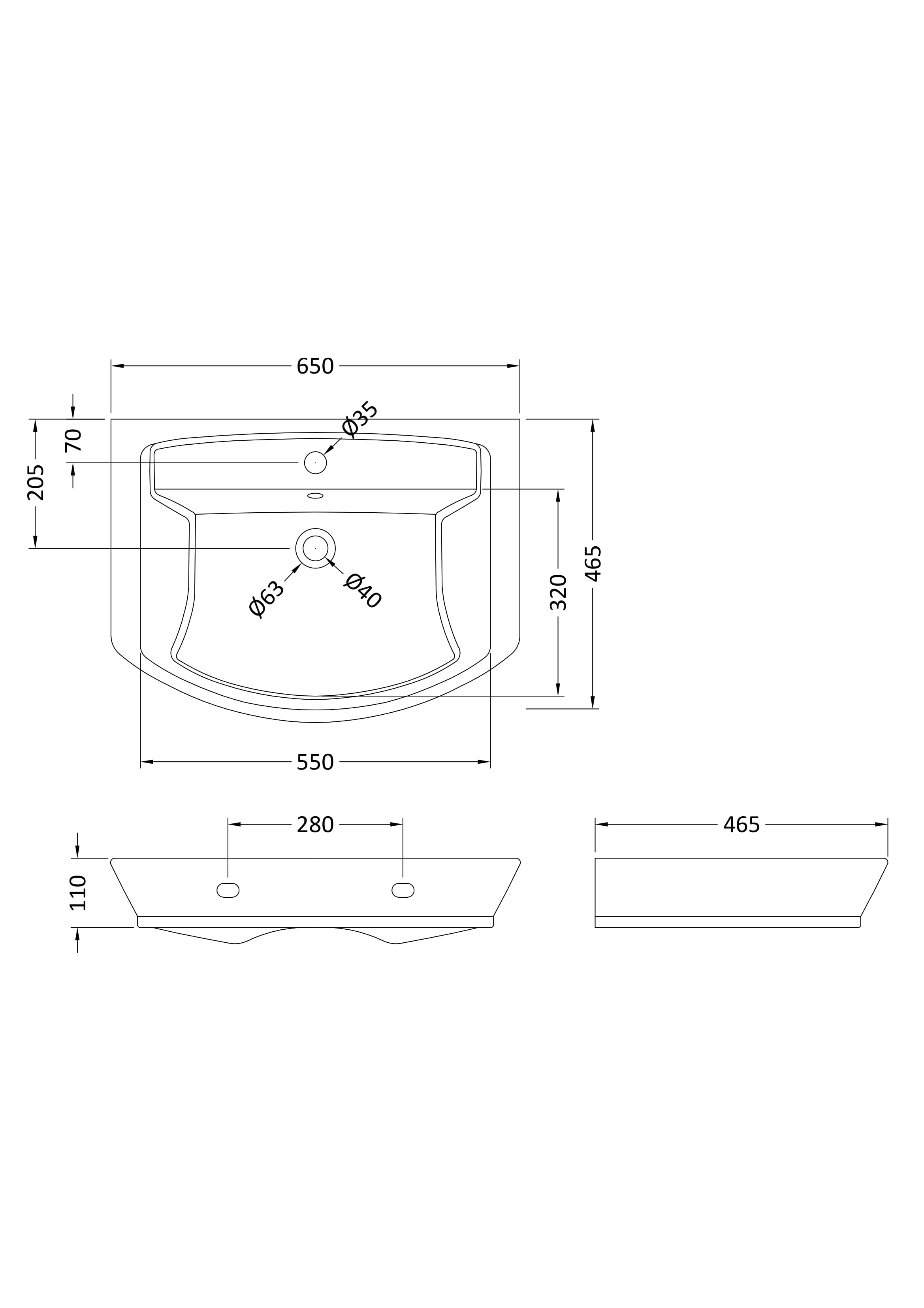 Hudson Reed Maya 650mm Basin 1 Tap Hole